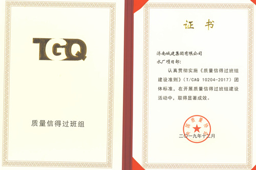 集團水廠項目部榮獲中國質量協(xié)會“質量信得過班組”