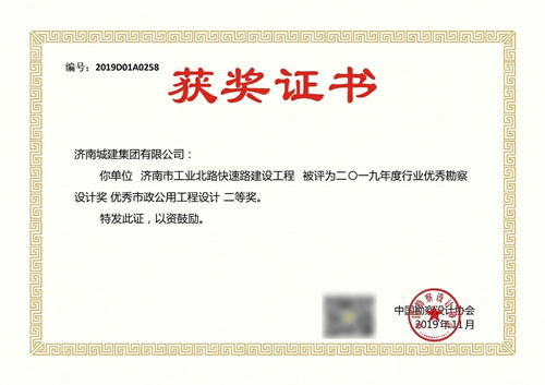 濟南市工業(yè)北路快速路建設工程被評為2019年度行業(yè)優(yōu)秀勘察設計獎優(yōu)秀市政公用工程設計二等獎