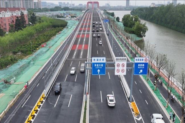 該工程于2023年11月正式啟動建設(shè),北起新勝路交叉口北側(cè),向南以跨線橋銜接現(xiàn)狀勝浦大橋主橋,工程全長約1公里,高架主線段長605米,橋?qū)?5.5米,采用雙向六車道設(shè)計,并配備四條匝道,設(shè)計車速達(dá)60千米/小時。勝浦大橋是連接工業(yè)園區(qū)和吳中區(qū)的重要通道,將有效提升區(qū)域交通通行能力。