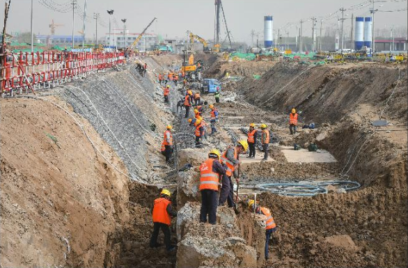 進(jìn)入城建集團(tuán)施工范圍的黃河大道施工現(xiàn)場,鉆機(jī)林立、機(jī)械轟鳴,處處展現(xiàn)如火如荼的建設(shè)場景。